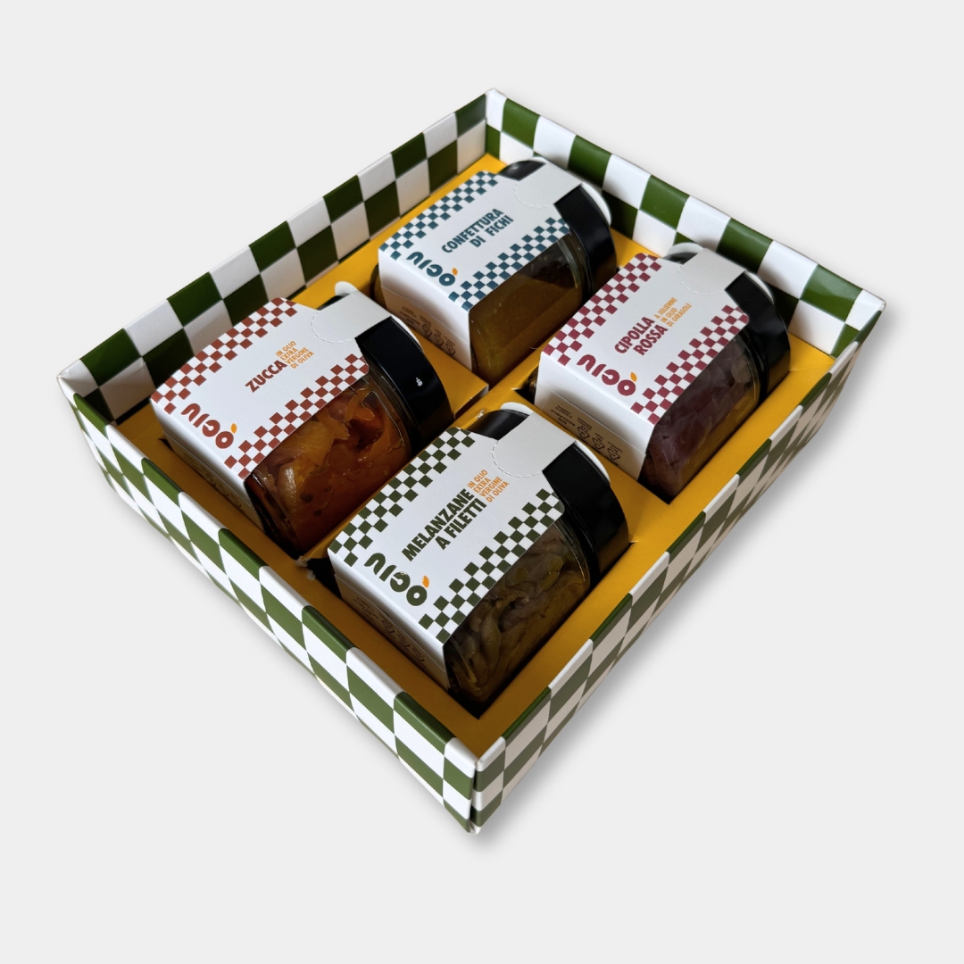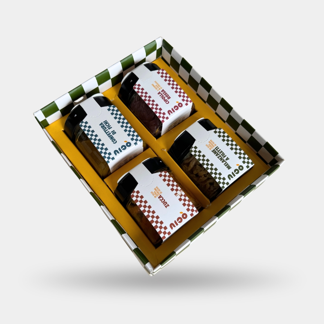Il Box Gold è un viaggio sensoriale dedicato ai sapori più autentici del Cilento. Questa elegante confezione regalo è pensata per gli amanti della cucina tradizionale e dei prodotti di alta qualità, permettendoti di scegliere e combinare a tuo piacimento 4 vasetti da 250gr dalla nostra pregiata selezione di specialità sottolio.